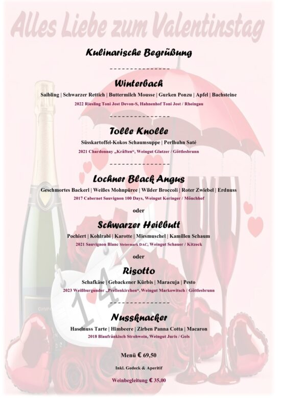 inkl. Aperitif, Gedeck und Kulinarischem Gruß aus der Küche!